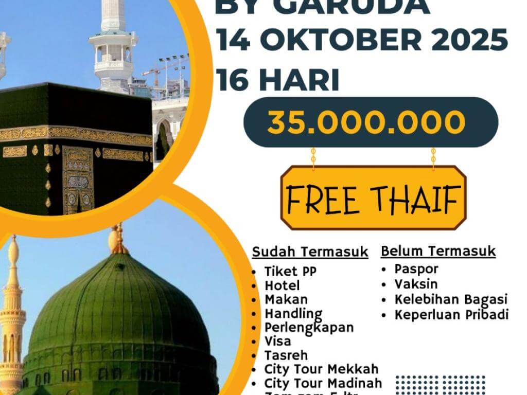 - Finalty Reffund 50% (Dari total yang telah disetorkan), 25 Hari Sebelum Keberangkatan.