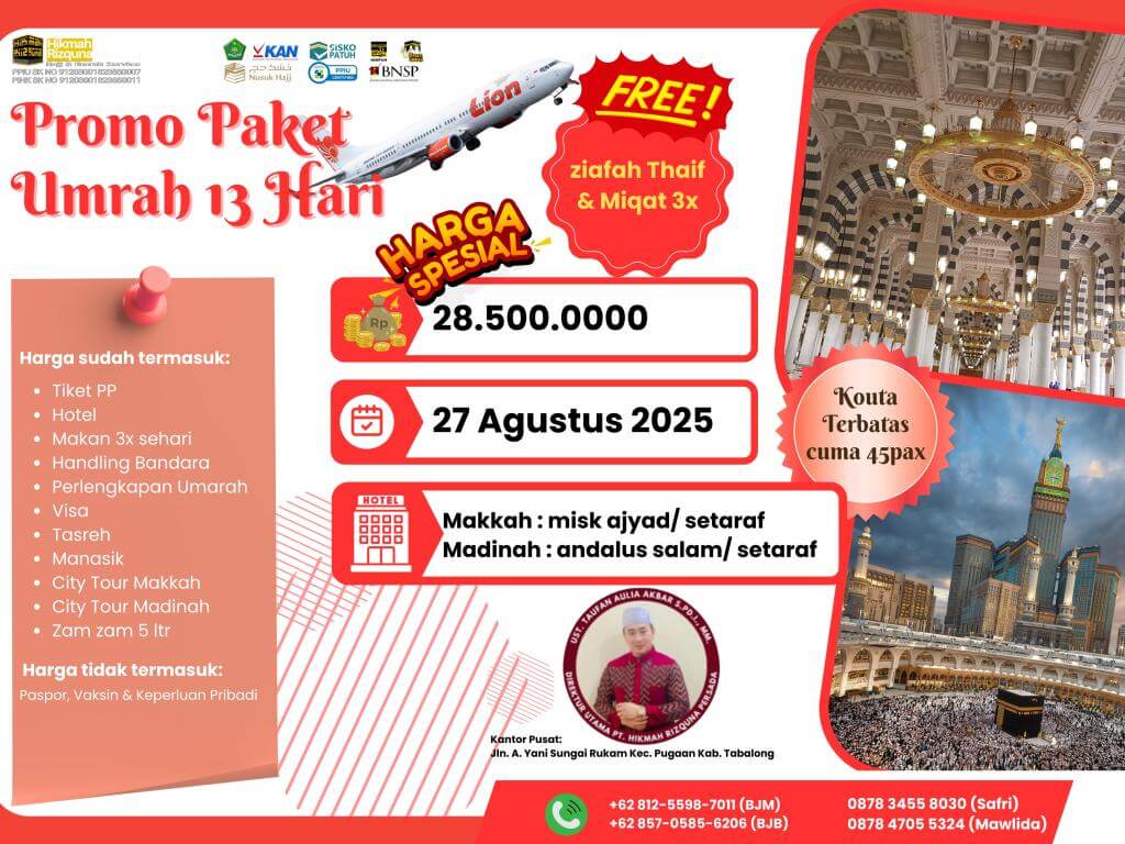 - Finalty Reffund 50% (Dari total yang telah disetorkan), 25 Hari Sebelum Keberangkatan.