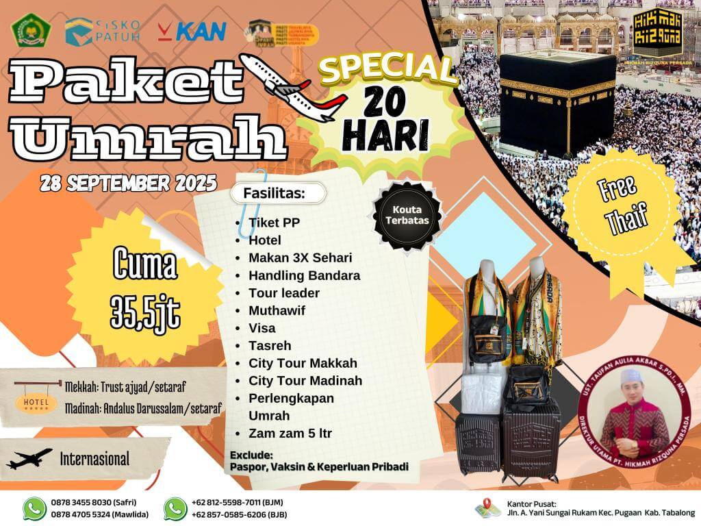 - Finalty Reffund 50% (Dari total yang telah disetorkan), 25 Hari Sebelum Keberangkatan.