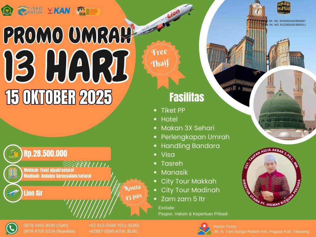 - Finalty Reffund 50% (Dari total yang telah disetorkan), 25 Hari Sebelum Keberangkatan.