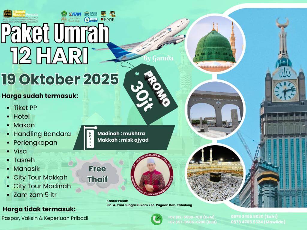 - Finalty Reffund 50% (Dari total yang telah disetorkan), 25 Hari Sebelum Keberangkatan.