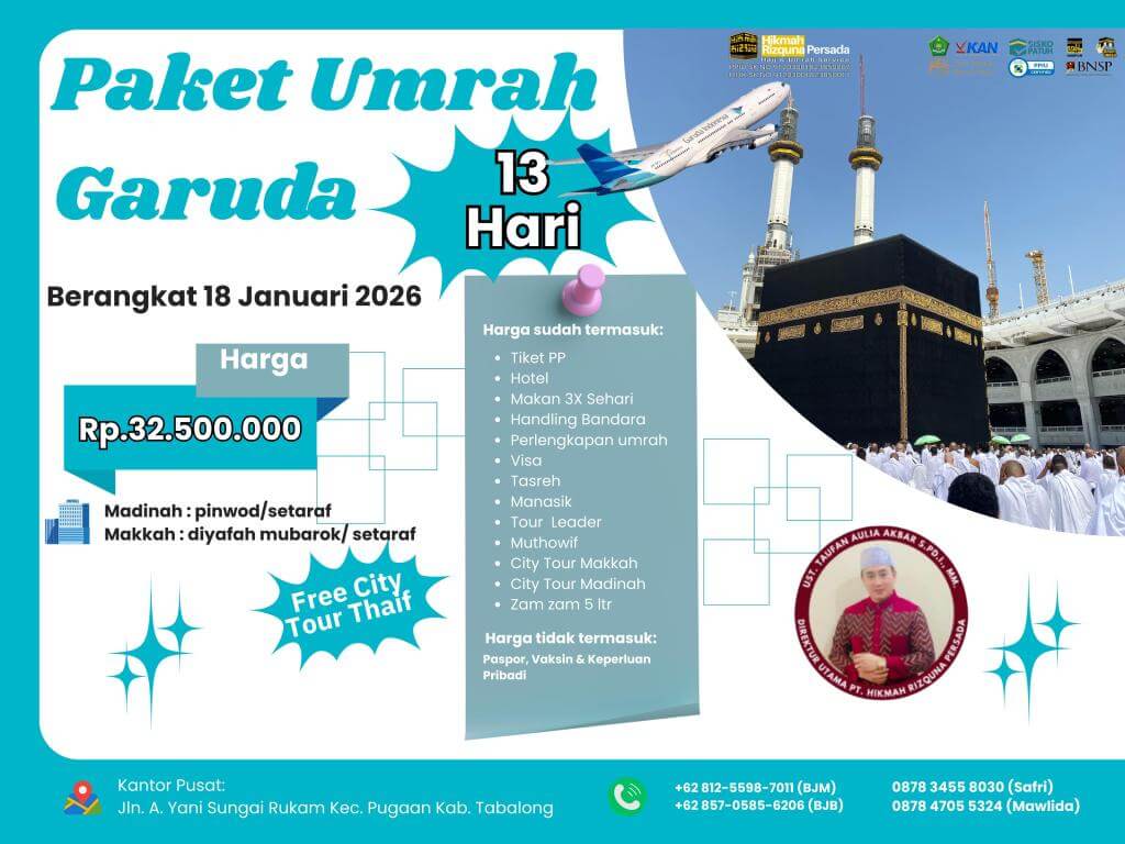 - Finalty Reffund 50% (Dari total yang telah disetorkan), 25 Hari Sebelum Keberangkatan.