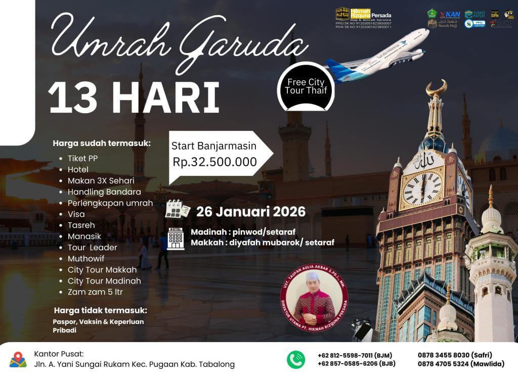 - Finalty Reffund 50% (Dari total yang telah disetorkan), 25 Hari Sebelum Keberangkatan.