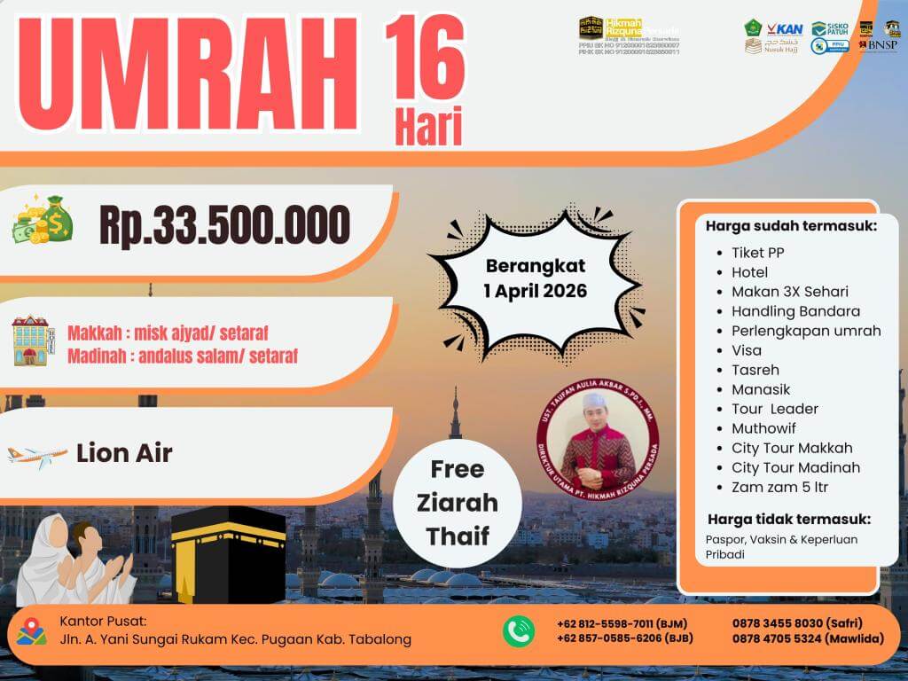 - Finalty Reffund 50% (Dari total yang telah disetorkan), 25 Hari Sebelum Keberangkatan.