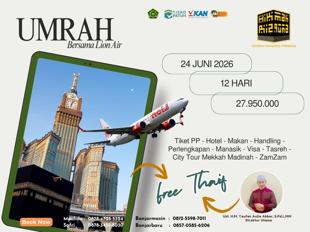 24 JUNI 2026 12H FREE THAIF UMRAH MUSIM LIBUR SEKOLAH (LION)
