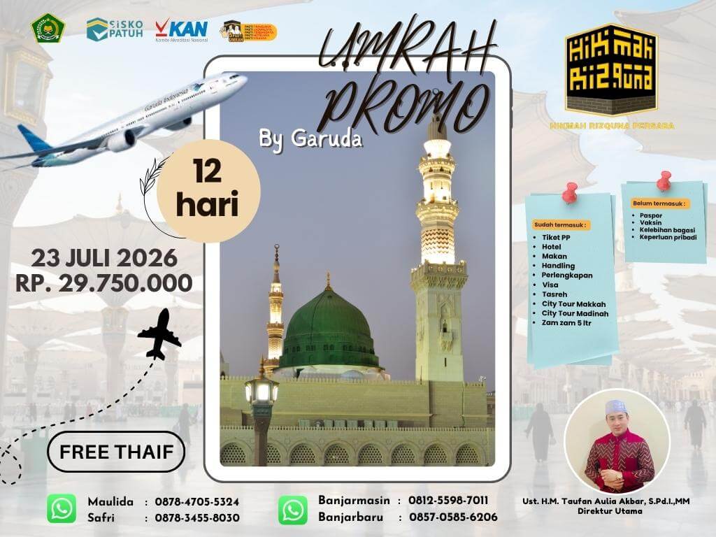 - Finalty Reffund 50% (Dari total yang telah disetorkan), 25 Hari Sebelum Keberangkatan.