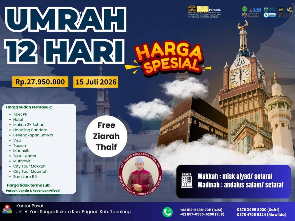 - Finalty Reffund 50% (Dari total yang telah disetorkan), 25 Hari Sebelum Keberangkatan.