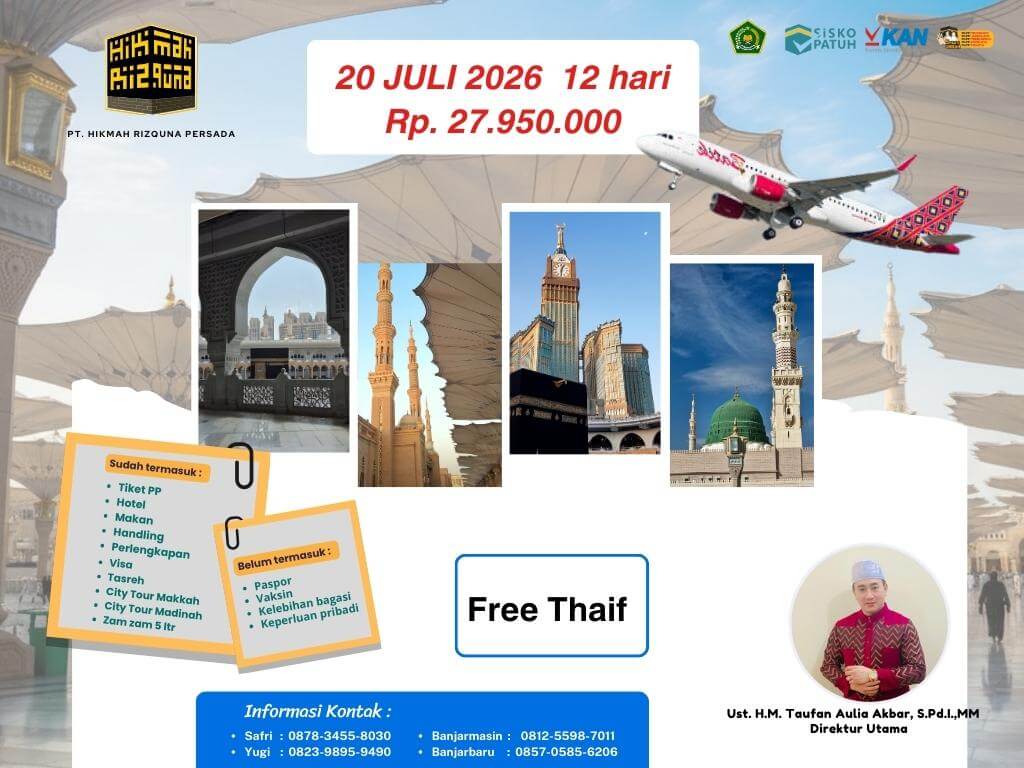 - Finalty Reffund 50% (Dari total yang telah disetorkan), 25 Hari Sebelum Keberangkatan.