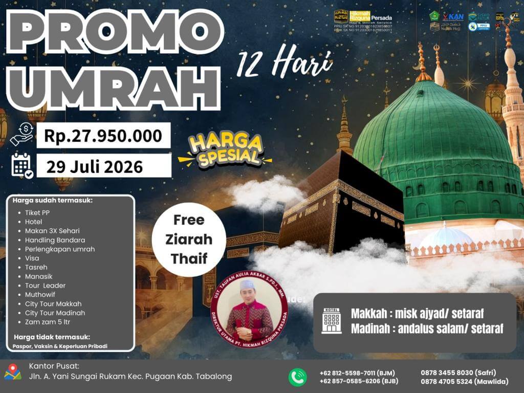 - Finalty Reffund 50% (Dari total yang telah disetorkan), 25 Hari Sebelum Keberangkatan.