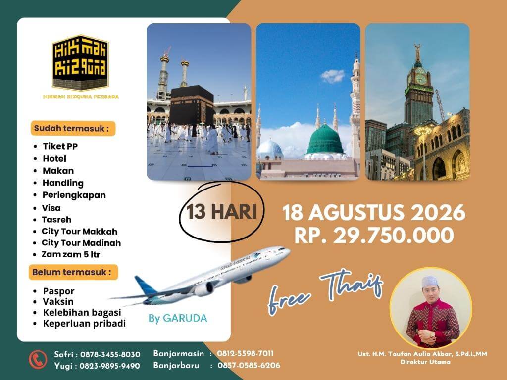 - Finalty Reffund 50% (Dari total yang telah disetorkan), 25 Hari Sebelum Keberangkatan.