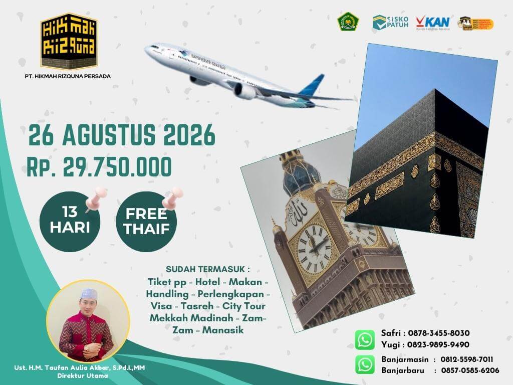 - Finalty Reffund 50% (Dari total yang telah disetorkan), 25 Hari Sebelum Keberangkatan.