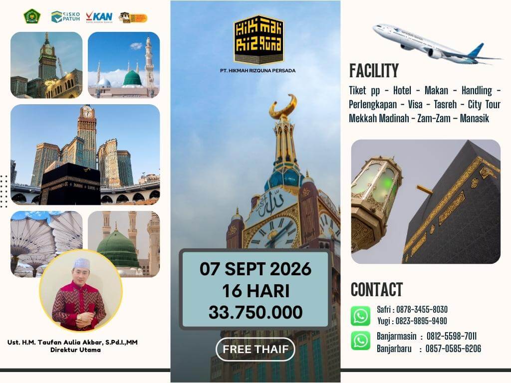 - Finalty Reffund 50% (Dari total yang telah disetorkan), 25 Hari Sebelum Keberangkatan.