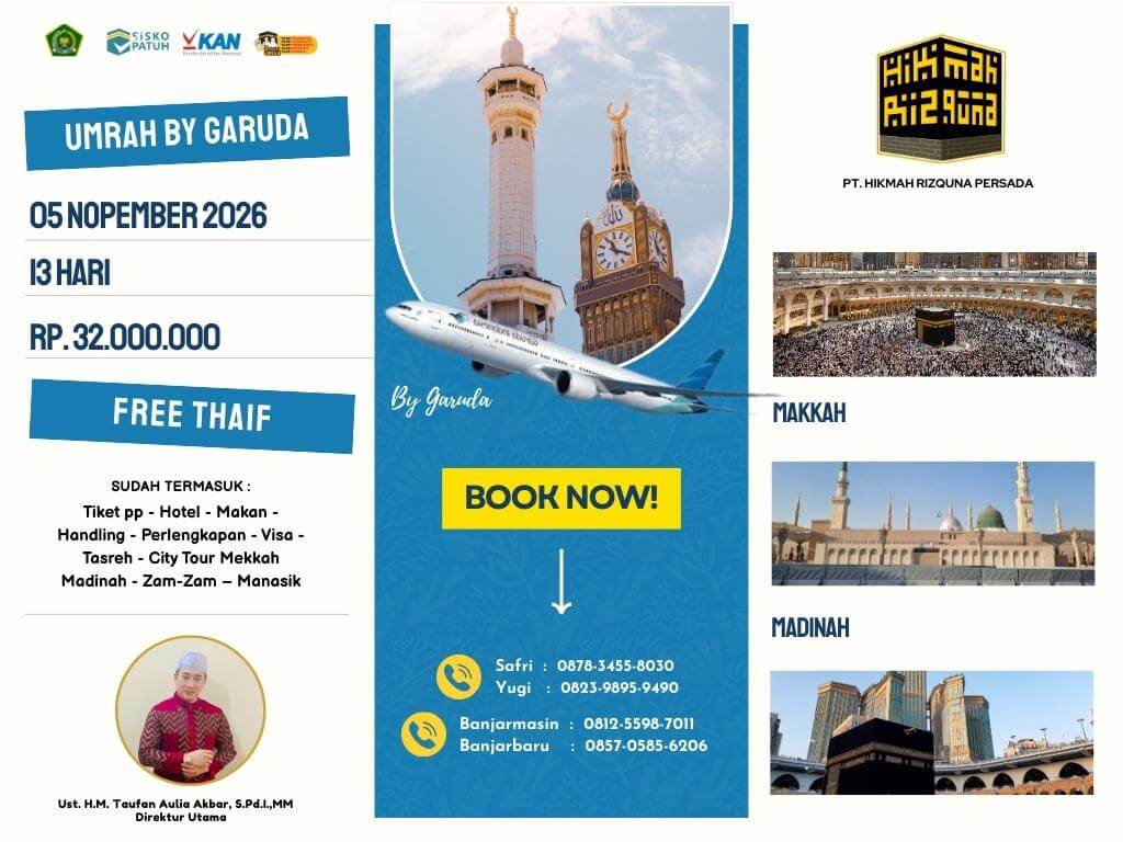 - Finalty Reffund 50% (Dari total yang telah disetorkan), 25 Hari Sebelum Keberangkatan.