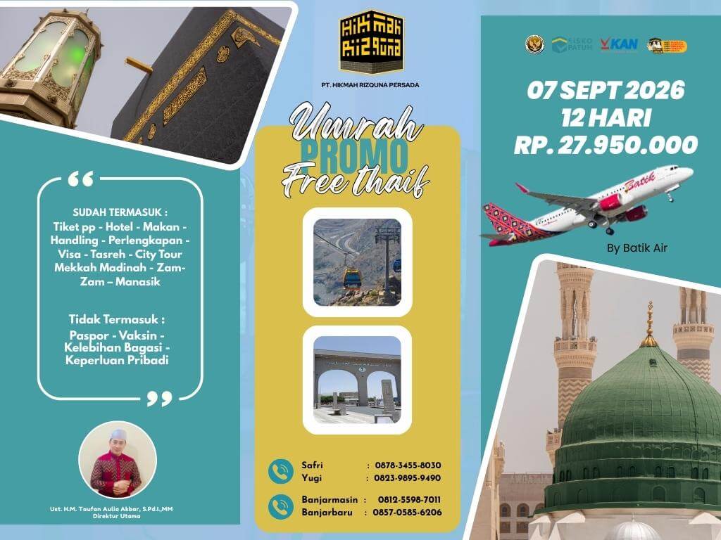 - Finalty Reffund 50% (Dari total yang telah disetorkan), 25 Hari Sebelum Keberangkatan.
