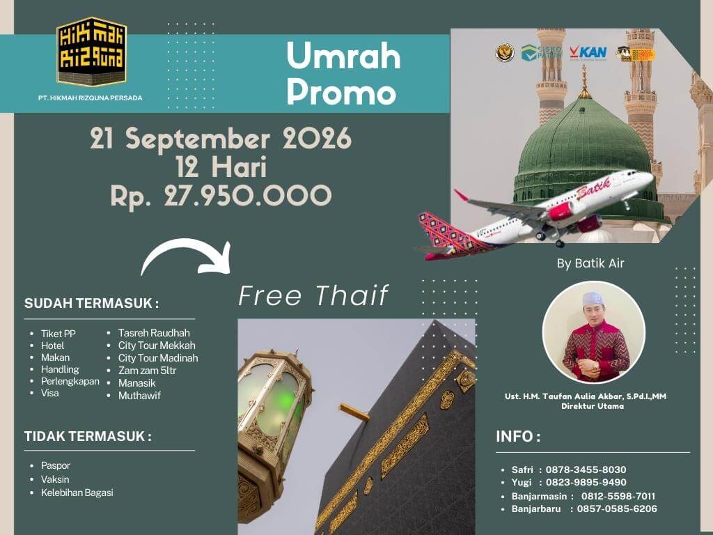 - Finalty Reffund 50% (Dari total yang telah disetorkan), 25 Hari Sebelum Keberangkatan.