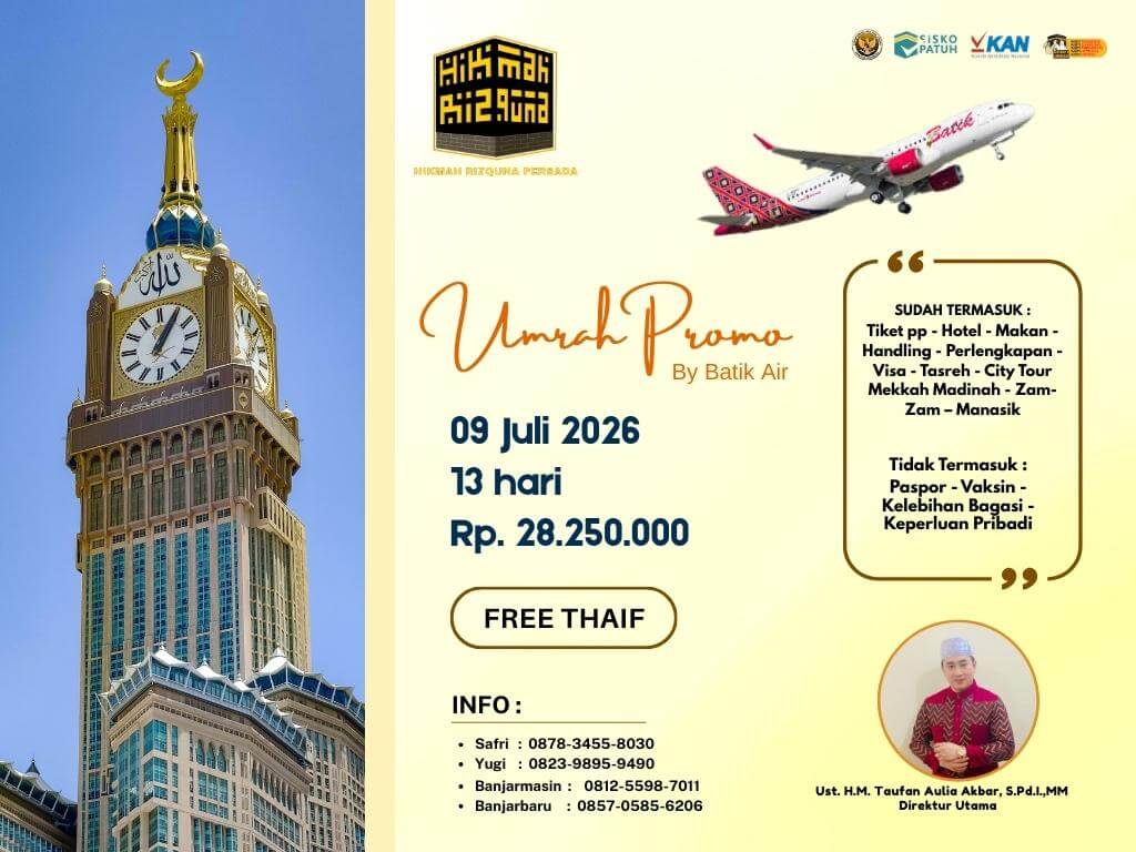 - Finalty Reffund 50% (Dari total yang telah disetorkan), 25 Hari Sebelum Keberangkatan.