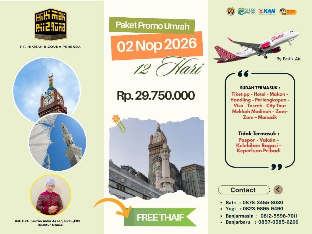 - Finalty Reffund 50% (Dari total yang telah disetorkan), 25 Hari Sebelum Keberangkatan.