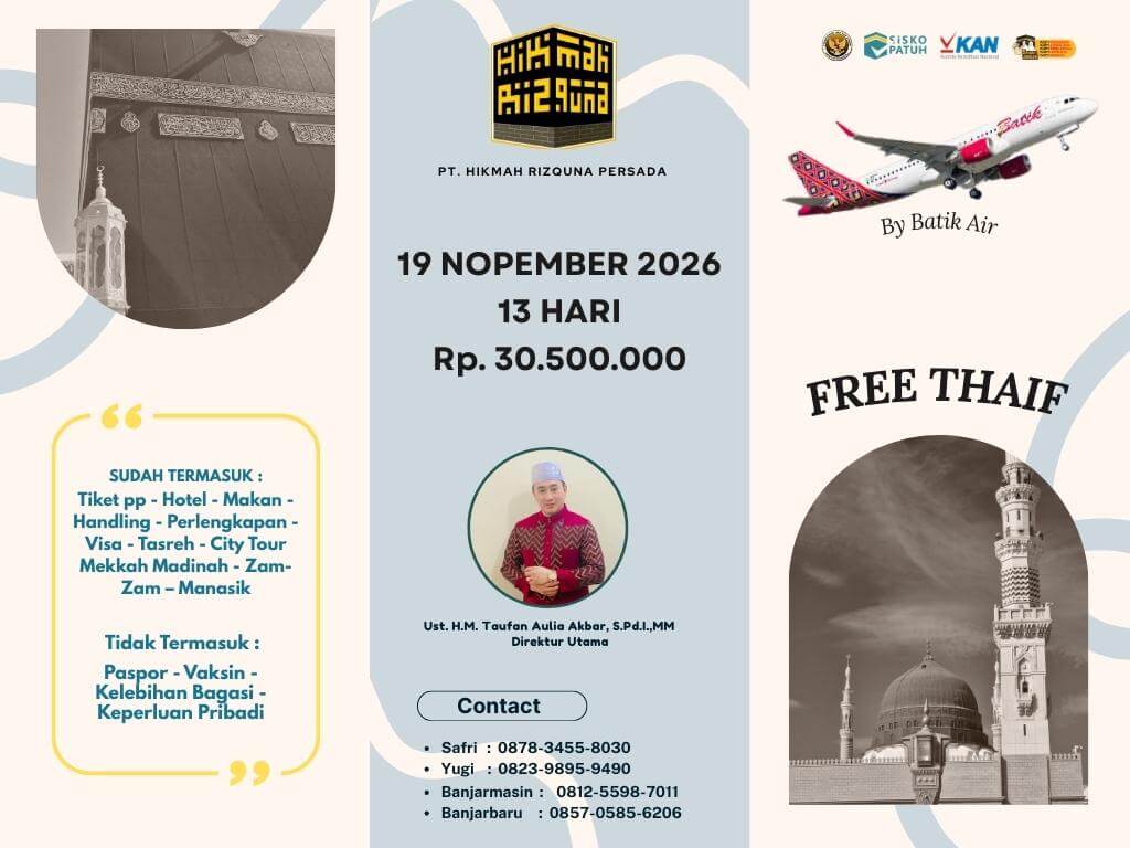 - Finalty Reffund 50% (Dari total yang telah disetorkan), 25 Hari Sebelum Keberangkatan.