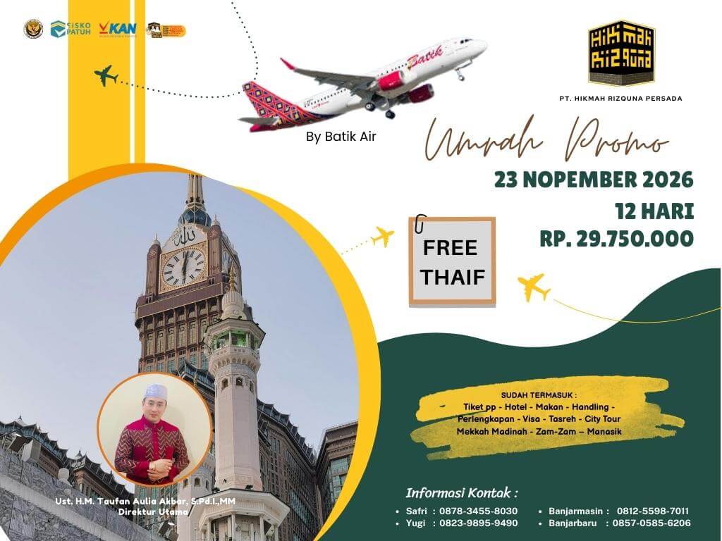 - Finalty Reffund 50% (Dari total yang telah disetorkan), 25 Hari Sebelum Keberangkatan.