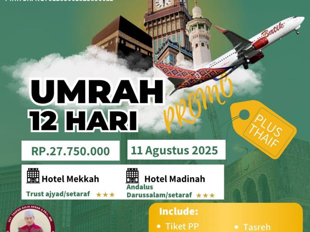 - Finalty Reffund 50% (Dari total yang telah disetorkan), 25 Hari Sebelum Keberangkatan.